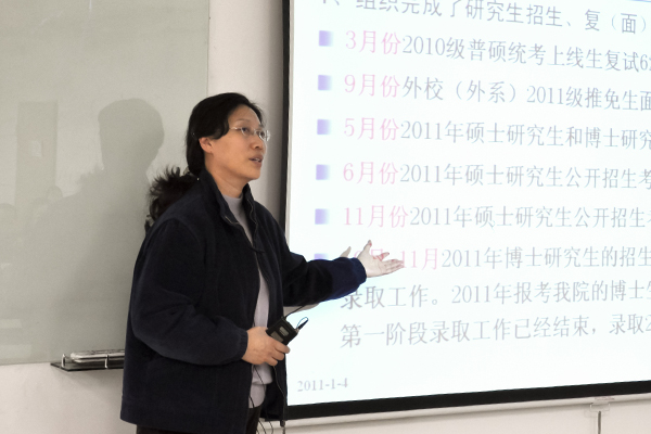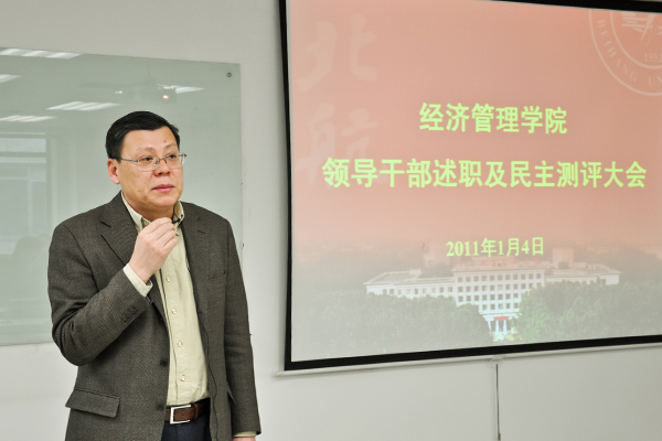 1月4日下午2:30,经管学院2010年度领导干部述职述廉及民主测评大会在新主楼A949教室召开,近90位教职工参加会议。