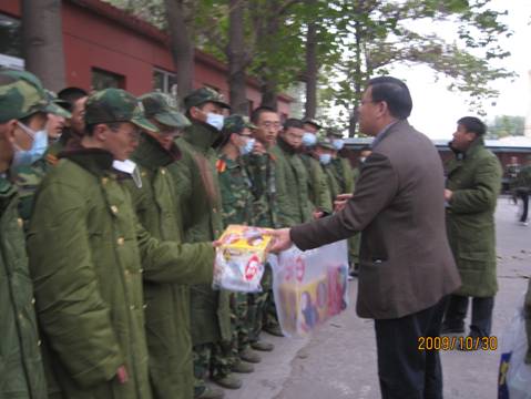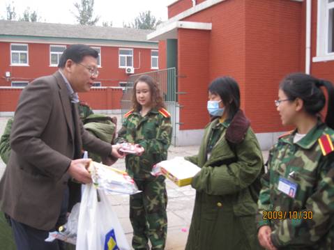 10月30日上午,经管学院党委书记刘志新、党委副书记姚伟龙、分团委书记刘件和学生工作办公室主任牟晖,赴大兴学生军训基地看望经管学院大一军训学员,并再次为大家送去文体用品和食品。