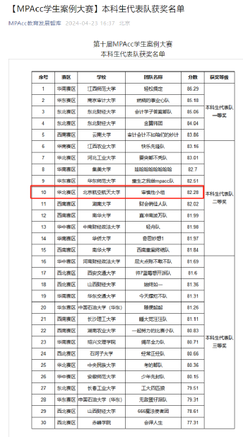 在4月26日落幕的2024年第十届全国MPAcc学生案例大赛中,由北航经管学院2021级四位同学(伊木然·依明江、张筠宜、王育菠、迪力亚尔·多尔坤)组成的本科生队伍“审慎性小组”荣获全国二等奖,连续3年跻身全国二十强!