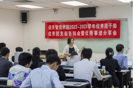 最后,白雪对各支部答辩表现进行点评,肯定团支部在这一学年的建设工作,强化团员理论学习,坚持党旗所指,就是团旗所向,以“青年大学习”、团日活动等为抓手,学好党史、团史。同时,重视团支部建设,使之成为增强班级凝聚力的重要手段。她还鼓励大家结合专业特点,秉持“从学生中来,到学生中去”的原则,创新开展大家喜闻乐见的活动,以支部力量引领班级同学成长成才。
