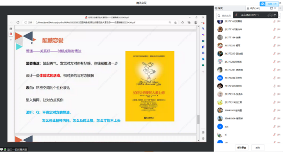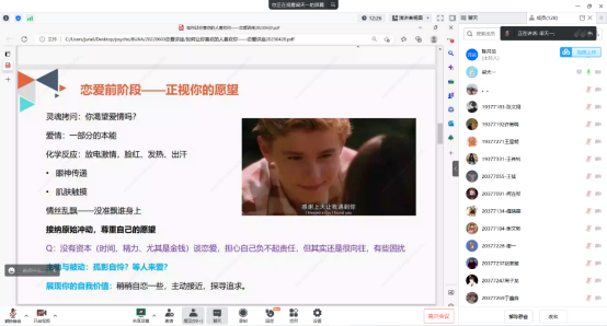 梁老师从恋爱前、酝酿恋爱、恋爱中三个部分展开本次讲座。
