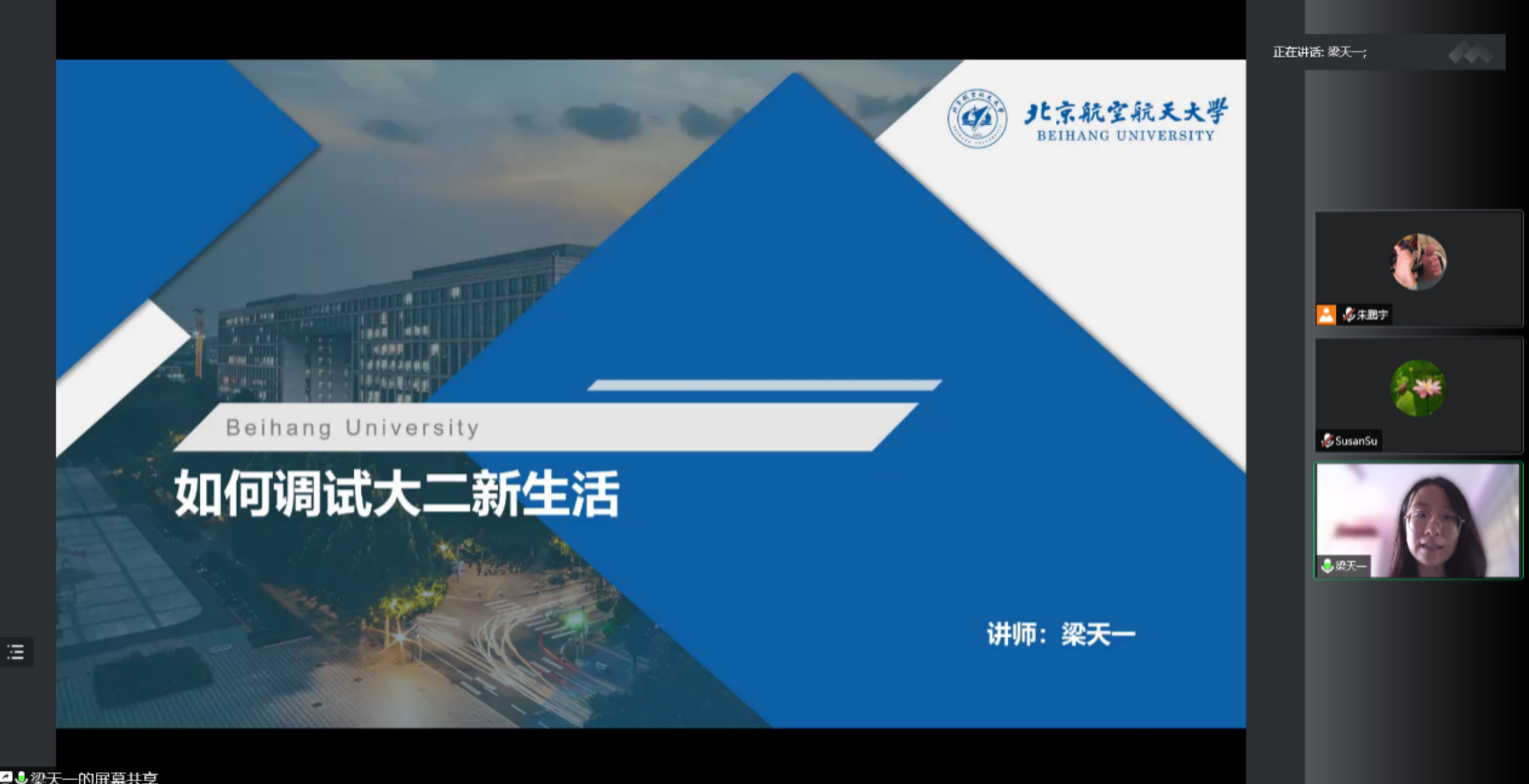 8月31日下午,beats365亚洲体育投注邀请学院专属心理咨询师梁天一老师和北航生涯规划教学团队召集人苏文平教授,为2021级同学开展了入学适应系列讲座。