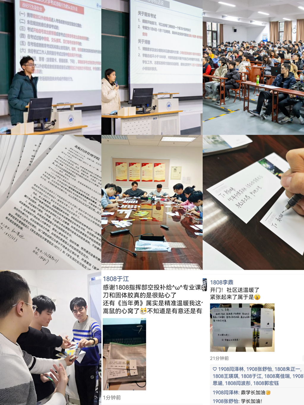 临近考研,beats365亚洲体育投注为考研学子准备了考研文具贴心礼包和定制“打气券”,辅导员和同学们一起手写祝福语,为考研学子打气加油。12月9日晚,辅导员走访学生宿舍,亲手分发“贴心礼包”,并提醒同学们合理安排作息时间,保持良好心态。一字一句的祝福,体现出学院对考研学子细致的关怀和殷切的期盼,同学们在收到礼包后也纷纷发朋友圈表达对学院的感谢和对考研上岸的期待。