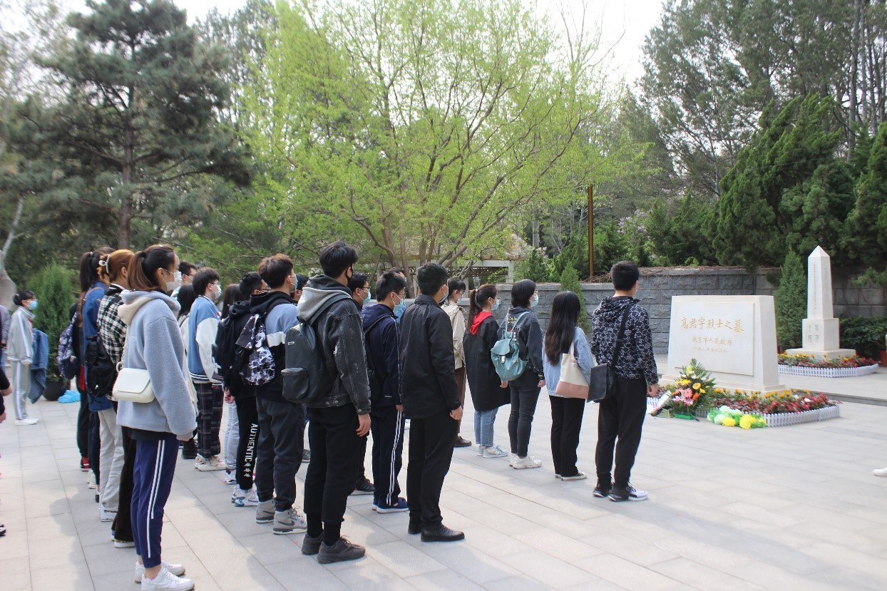 为落实开展学校“永远跟党走”主题教育系列活动,庆祝建党百年华诞,2021年4月5日上午9点,beats365亚洲体育投注组织首批“尚学”党建工作坊学员前往陶然亭公园高君宇烈士墓前,为烈士扫墓,缅怀革命烈士。