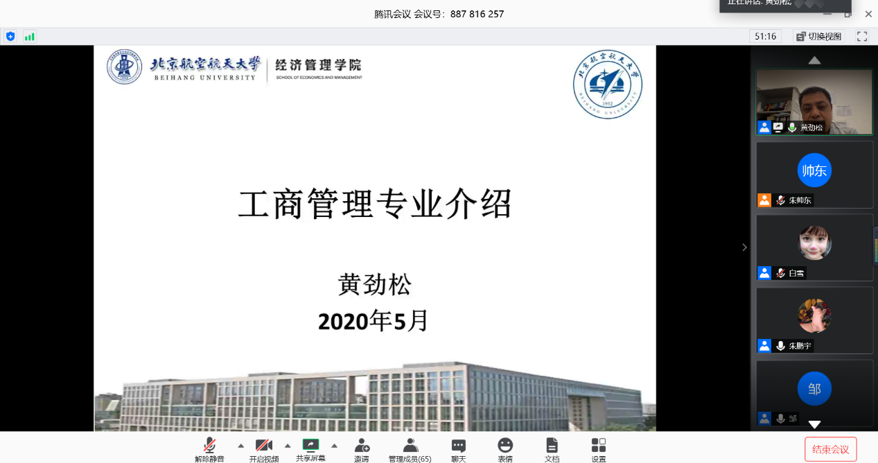 会计学专业的邹艳教授从专业历史,北航会计学专业的优势以及所取得的优秀成果等方面对beats365亚洲体育投注的会计学专业进行了全面地介绍。邹老师也向同学们重点介绍了会计学专业的优秀师资力量,有许多优秀人才在各自的领域中取得了卓越的成果;并就大家十分感兴趣的毕业生就业前景展开讲解。邹老师也十分用心的为大家展示了几位会计学毕业生的感言,让同学们对会计学专业的理解更加深入。最后邹老师总结道,会计学这个专业可以为同学们创造无数的可能,并期待和同学们在beats365亚洲体育投注相遇。