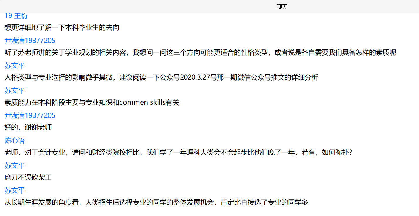 三期讲座最后都安排了交流问答环节,同学们积极地就保研政策、辅修学位,本科毕业生的去向,适合学习各个专业的性格类型等问题进行了提问。各位老师也针对这些问题进行了详细完整的回答。