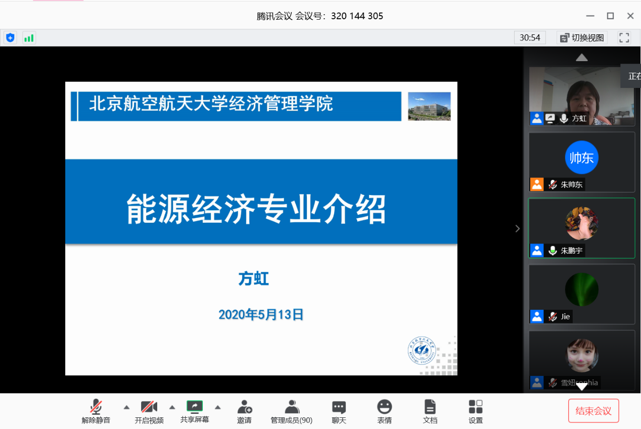应用经济系主任方虹教授介绍了北航能源经济系的特色与培养方案,由于能源工程发展迅猛而能源经济发展相对滞后,故需要更多能源经济管理人才,能源经济系旨在将个性化定制、交叉融合、大数据、信息技术和复合知识与能力融入培养模式中,持续探索以课程为核心、以平台为支撑的协同创新育人模式。研究方向主要有能源经济、资源与环境经济、能源与气候变化、能源金融等等,学科交叉性强,且丰富多样。教授特别提到,第十六届“挑战杯”唯一一个社科类特等奖出自北航能源经济系,充分体现本专业同学的优秀,教授又列举了几位优秀的学长学姐,为我们树立了标杆与榜样。