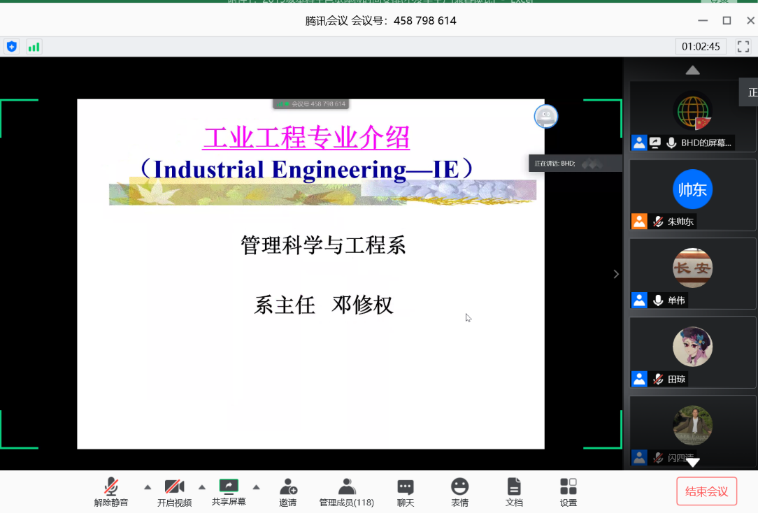 行为与运作管理系主任田琼教授从建立历史、培养目标、课程设置、本科就业、专业特色、师资和研究方向等方面对工程管理专业进行了全面的介绍。其中重点介绍了专业的四个特色——研究实力强、影响力大;国际联合培养;实习基地建设;师生关系密切和研究的四个主要方向——研发质量管理、技术创新行为管理、能源/电网工程管理、交通管理,为同学们描绘出本专业的具体形象,充分展现了工程管理专业的独特魅力。最后田琼教授寄语同学们,希望大家成为追随知识的创造者,而不是知识的追随者,知识创新,不负才华。