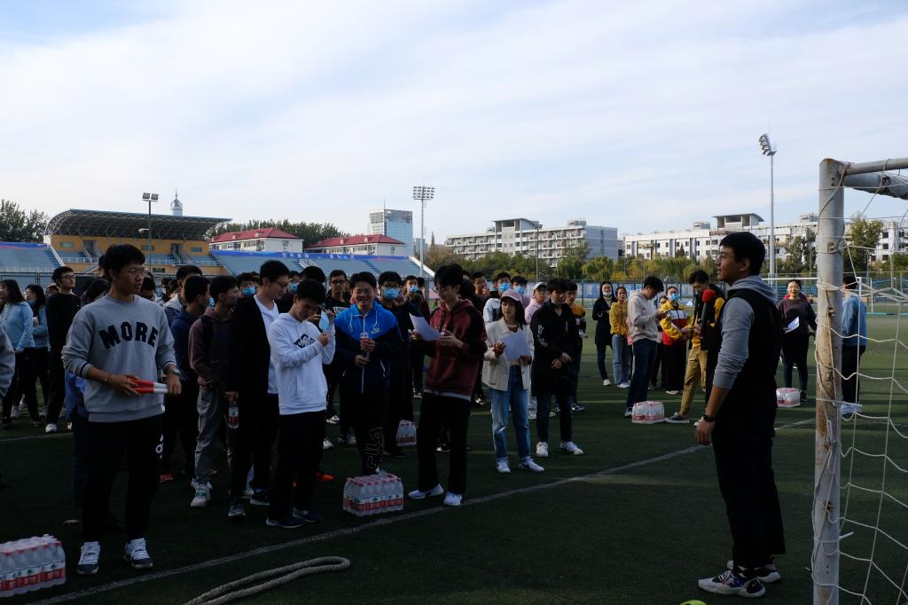 1028日下午2:30,经管学院1808大班在小足球场举办积极心理趣味运动会。运动会由1808大班长赵一博主持,辅导员丁得彬、张园园以及1808大班189名学生参加了此次运动会。