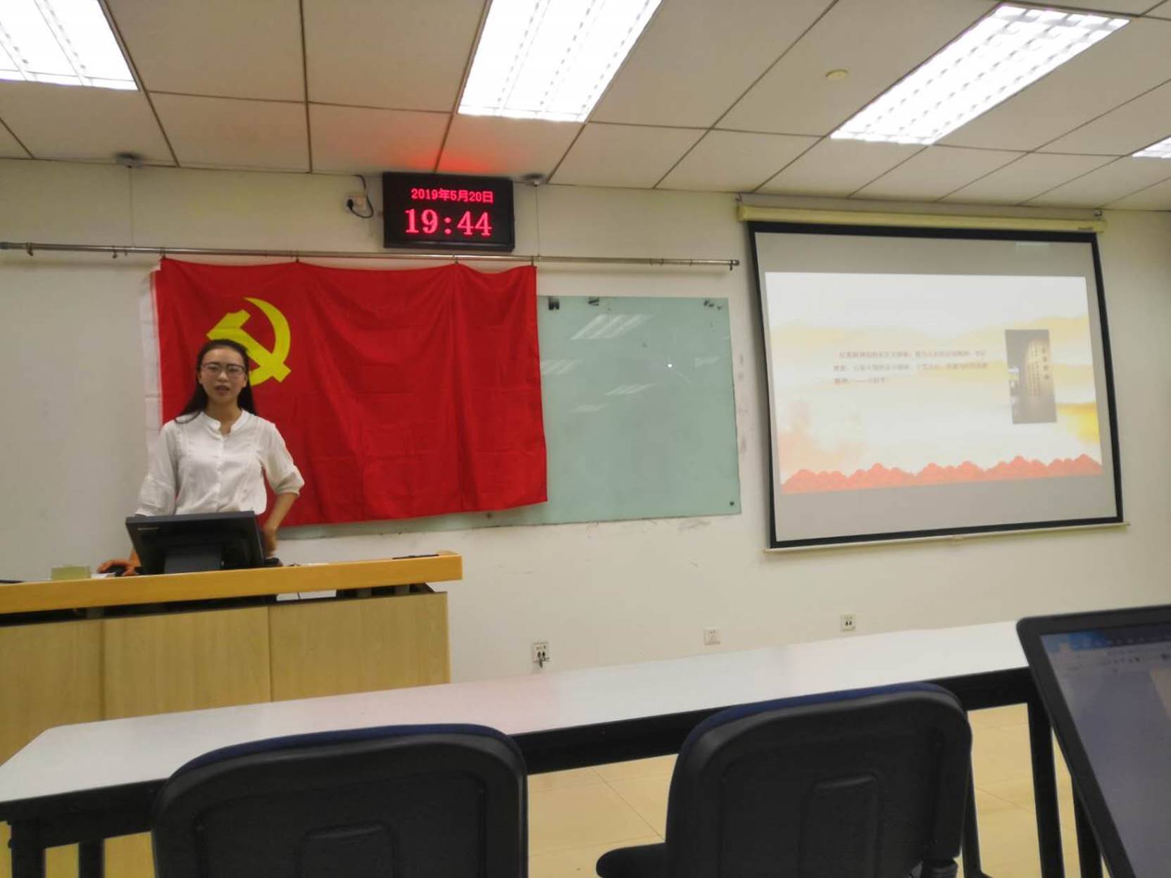 2019年5月20日,1508党支部在新主楼A1028教室举行了“红船精神”专题集体学习。王文涛、丁宁、马倩茹、郭梁四位同志分别带来红船精神分享。