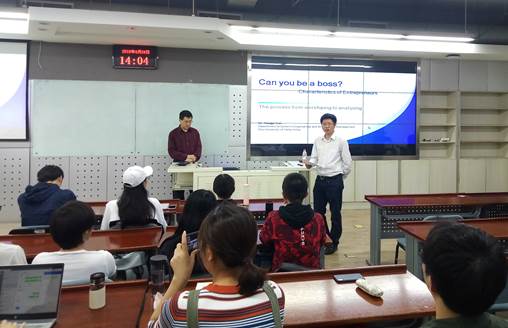 孙博士从社会财富收入不均开始讲起,引入了本次课程的内容,包括企业家为什么成功、如何成为企业家、我们应该学习企业家的哪些内容、以及创新创业课程能够对同学们提供的帮助。在讲座过程中,孙教授通过课堂互动引导同学们对企业家核心成功特征进行了思考。然后,孙教授通过文献研究,总结出企业家的核心特征,即有目标,有创造力,有承担风险的能力,自信,以及人际沟通的能力。此外,孙教授通过马戏团大象的训练,老鼠追猫等小故事,深入浅出的对企业家的特征进行了生动形象的阐述。课程中,孙教授为使同学们更加清晰地认识自身到与成功企业家间的差距,他让同学们将自己对成功特征进行的评分,与成功企业家间的评分数据进行对比。最后,孙教授通过耶鲁研究,向同学们介绍了目标设计理论和目标设计的原则,引导同学们尽早进行目标的设置与规划。