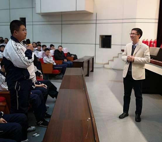 之后,刘虎教授以《追寻梦想 发现自我》为题,贴近高中同学成长的实际需求,从“关于自己”、“追寻梦想”、“发现自我”、“伴我同行”四个方面风趣地分享了自己在飞行器设计领域的求学和研究经历,并结合最新的国际国内时事,向同学们生动地展示了北航人如何利用自己的知识,实现“空天报国”的理想。在讲座进行过程中,他还就人生的选择这一命题与同学们开展深度互动。刘虎教授渊博的学识、真切的情感和深刻的见解赢得了同学们的阵阵掌声。