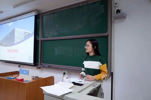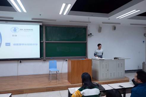 第四位是本科为金融学专业的郭一鸣同学,郭同学首先为学生介绍了一些曾经学过的课程,接着,他结合实际去鼓励大家明确兴趣,认真听课,独立修行,开拓视野。他的个人感悟为学生提供了很大的帮助。