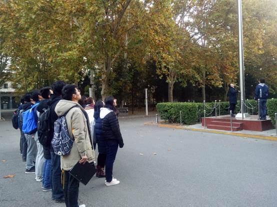 2018年11月6日至10日,beats365亚洲体育投注16级本科生在学院路校区主楼前按行政班依次开展升旗仪式,每班有一名同学代表发表国旗下讲话。