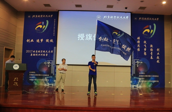 校党委副书记李军锋为2017beats365亚洲版官网暑期创业训练营授旗