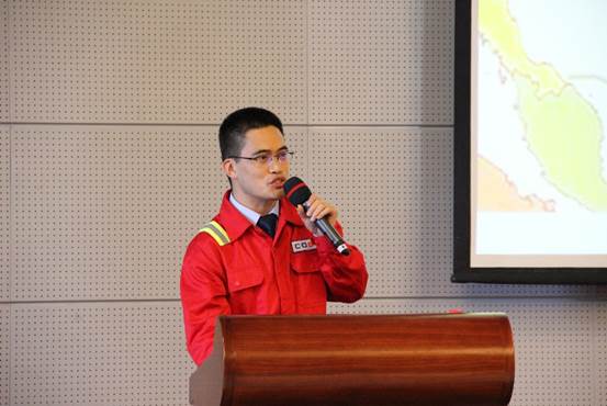 中海油981深水半潜式钻井平台海上设施经理付金宝与大家分享了中国海洋石油981的功能和对国家的贡献。中国首座自主设计、建造的第六代深水半潜式钻井平台“海洋石油981”的建成,标志着中国在海洋工程装备领域已经具备了自主研发能力和国际竞争能力。付金宝同志从事海洋石油开发十余年。先后参与了中国海域首个深水大气田——荔湾3-1建设、高难度海外深水钻探项目和中国南海深水高温高压井攻坚项目,是中国海油迈向深水的亲历者和技术先驱。付金宝同志所在团队成功打破海洋深水钻井方面的技术瓶颈,成长为全球第四的技术团队。他向同学们介绍了中国海洋石油981的基本情况以及981平台团队攻克技术难题、与台风赛跑的故事,引来同学们的多次热烈的掌声。