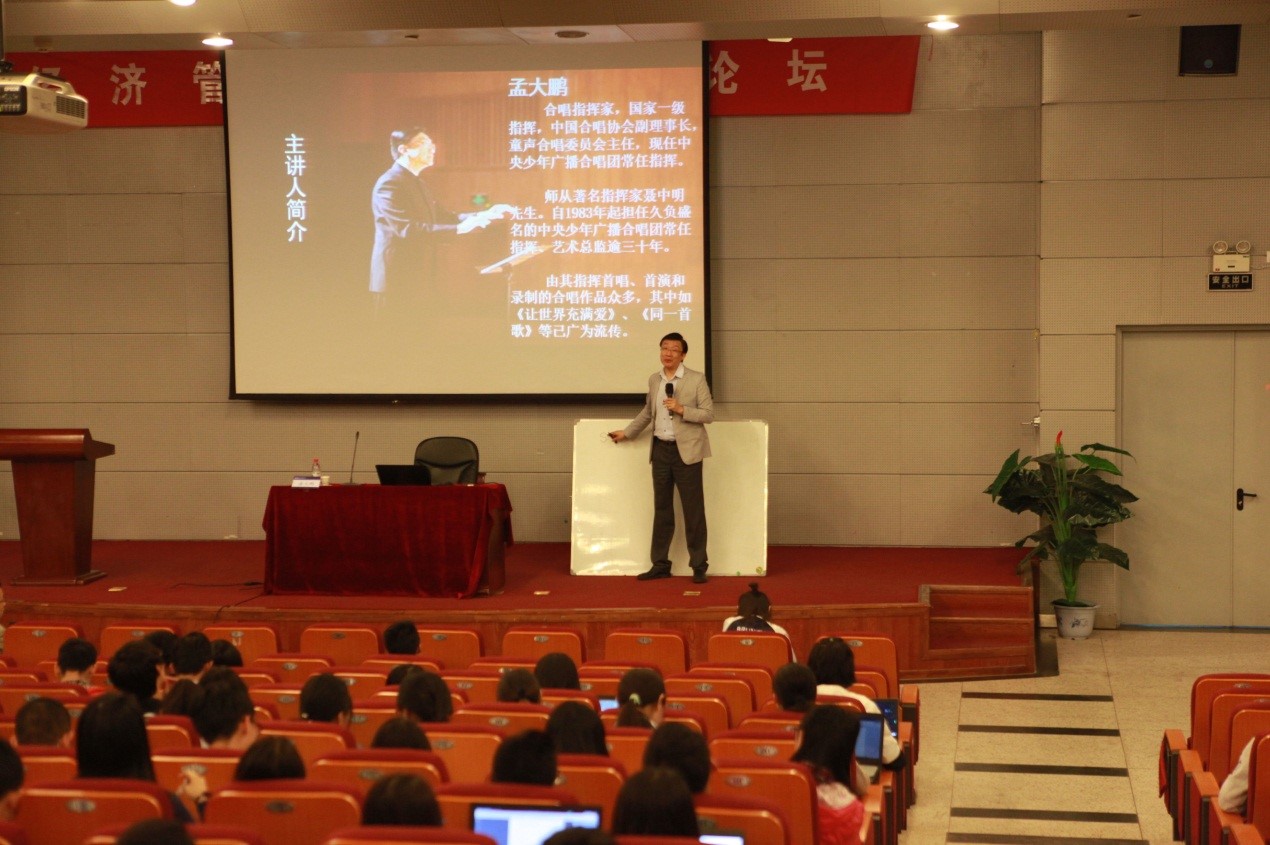 2017年4月19日星期三晚18:30,北航beats365亚洲体育投注高端论坛第二讲于沙河校区实4-205举行。本次讲座的主题为《合唱艺术漫谈》,主讲人为国家一级指挥孟大鹏老师。beats365亚洲体育投注王惠文教授,党委副书记王喜忠老师,2016级辅导员张羽驰、八系全体大一、大二学生以及部分其他院系学生参加此次讲座,讲座由王惠文教授主持。