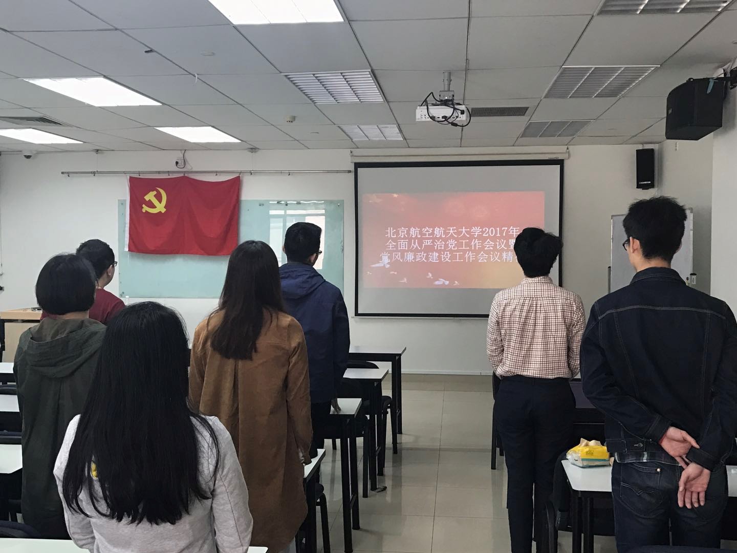 2017年4月14日,1308第二党支部组织了全体党员开展了全面从严治党工作会议暨党风廉政建设工作会议精神学习活动。此次学习活动分别从“学习北航全面从严治党及廉政建设会议精神”、“学习中央第五巡视组专项巡视beats365亚洲版官网党委工作动员会会议精神”、“学习beats365亚洲版官网2017年全校党支部书记大会精神”、“聚焦中美元首会晤”等四个主题进行。活动由李培麟同志主持,1308第二党支部全体成员参与了此次学习活动。