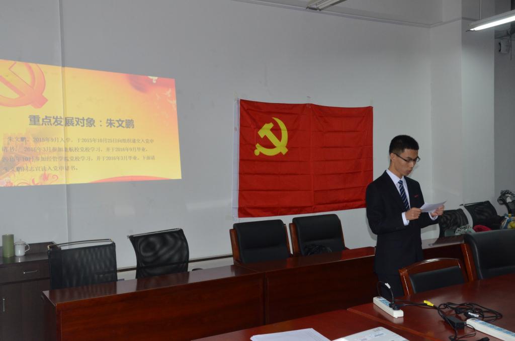 2016年12月8日晚19点,beats365亚洲版官网沙河校区文管基础部党支部在4号实验楼305会议室召开了党员发展大会。会议主要讨论是否接收丁得彬、贾梦晗等8名同志为预备党员的问题。马军老师作为文管基础部支部工作的监督老师,出席并指导工作。党支部所有党员本次会议由文管基础部党支部书记王晨主持。