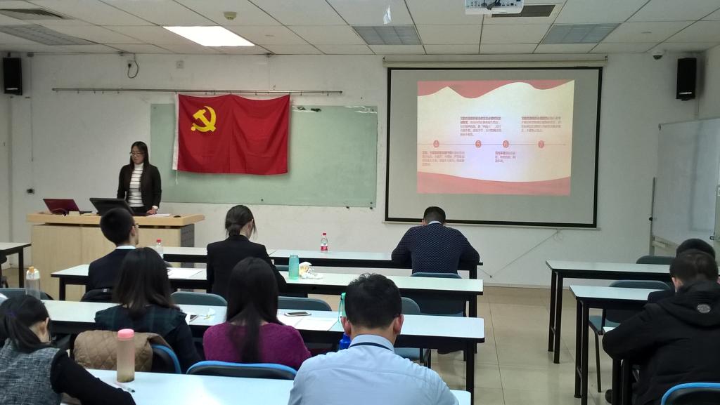首先,张瀚升、彭云龙分别以“入党标准”和“共产主义信仰”为主题分享了他们对党员基本义务和党员信仰的理解,“一个共产党员,应该是襟怀坦白,忠实,积极,以革命利益为第一生命,以个人利益服从革命利益”;随后余炜成为同志们讲述了中国共产党的抗战历史,许梦泽从毛主席青年时期的轶事谈起,分享了伟大领袖的个人魅力;陶世凯、张亮、杨鑫淼、贾英巍、张羽驰分别以“社会主义现状”、“四个意识”、“学党章”、“四讲四有”、“七一讲话”为主题分享了学生党员对现阶段社会主义建设的见解;吴燕霞和郭清峰分别为同志们分析讲述了中美选举制度的差异和中国共产党党内监督机制。最后在党支部书记王月君的带领下,全体党支部成员学习了十八届六中全会的精神,党员们纷纷表示作为学生党员,一定要认真学习、全面贯彻和落实六中全会精神,积极参加党内政治生活,认真行使党员权利,自觉履行党员义务,做一名合格的党员。