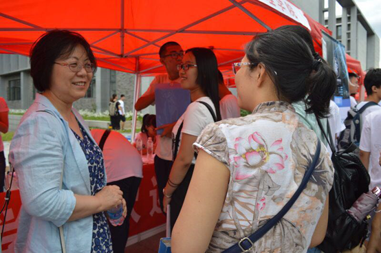 在迎新过程中,院长范英、党委书记刘志新、党委副书记王喜忠、分团委书记张驰、1408大班辅导员胡杰、1508大班辅导员王文涛和王晨,也来到迎新工作地点与新生家长见面,指导并监督迎新工作的开展。