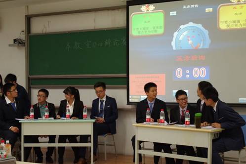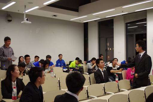 4月8日第一场的辩题是正方:“大学生创业应立足于自身优势”,反方:“大学生创业应立足于市场需求”。正方队员分别为张丹蕾、贺童、陈雷和黄思晋,反方队员分别为谷艺、毕诗扬、朱文鹏和白文浩。参加双方就该辩题展开了精彩的角逐。经过激烈的辩论,评委评定第一场辩论正方胜利,最佳辩手是贺童同学。