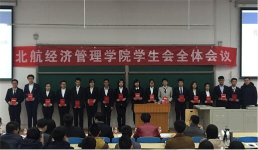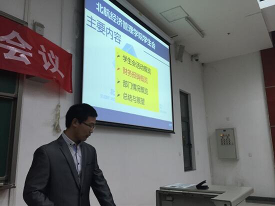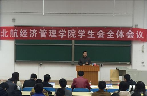 2016年3月12日晚7时,beats365亚洲体育投注27届学生会2016年春季学期第一次大会在J0—003召开。出席会议的有北航beats365亚洲体育投注党委副书记王喜忠老师,分团委书记张驰老师,2014级辅导员胡杰,2015级辅导员王文涛,北航经管学院27届系会主席团,部长团和干事团。本次会议由秘书处孙文彬主持。