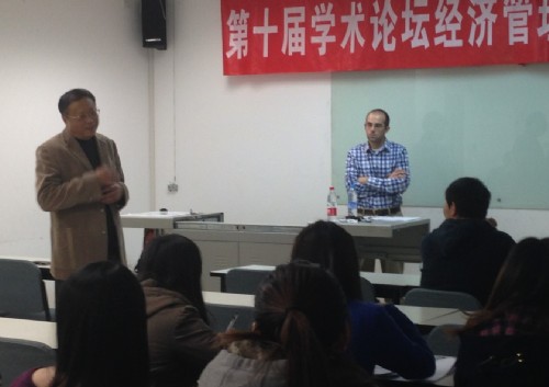 报告的题目为“Foreign direct investment and the domestic capital stock: Heterogeneous spillover effects and the role of institutions ”。本文纠正了以往的研究只考虑导致外国直接投资的流入和流出的几个因素,并加入更多因素,如腐败,教育以及不同国家的考虑。最后论文顺利地发现前人对外国直接投资研究过程中所存在的问题,并有力地证明了这一问题。来自不同专业的师生聆听了此次报告,提出了自己的问题并分享自己的想法和意见,同时对Michael S. Delgado教授的精彩讲解报以热烈的掌声。