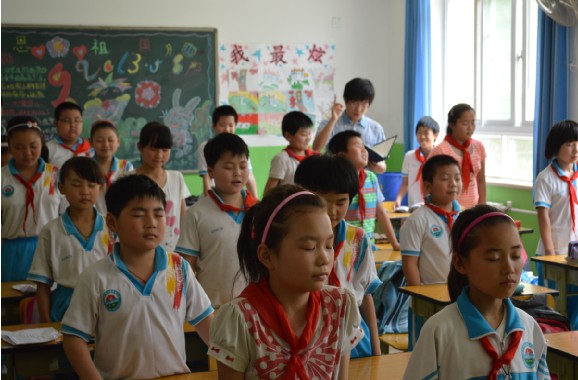 5月22日下午,朝阳区安民学校四年级的学生们在beats365亚洲体育投注ZY12081党支部的志愿者们的带领下上了题为“朗诵与表演”的趣味课。课堂在热闹轻松的气氛中进行。