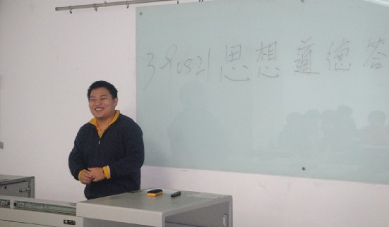 2012年12月5日下午,390821班思想道德答辩会在新主楼A1028召开。班主任王理副教授,辅导员姜姗、邱冲,及390821全体同学参加了本次答辩会。会议由姜姗主持召开。