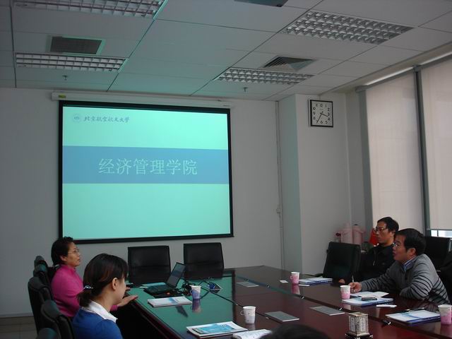 杨梅英副院长向来访嘉宾介绍了我院的发展历程、学科建设、师资队伍建设、各类学生培养,科学研究、国际合作等情况,徐光宇、牟晖主任分别从学院建设、学生就业方面与来宾进行了交流。