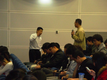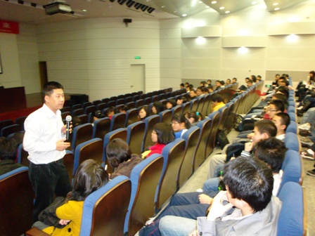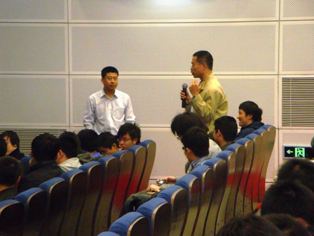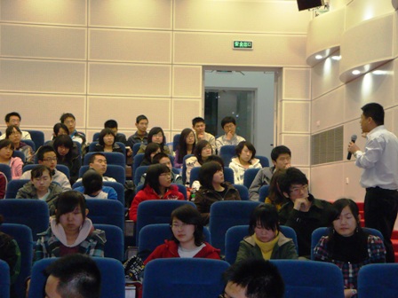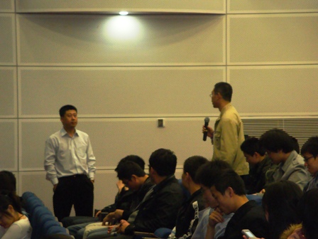 为切实解决此问题,3708大班联合3808大班在经管学院职业发展中心的支持下,于2009年3月16日19点在新主第二报告厅举行主题为:“起点北航 目瞻未来——与社会成功人士零距离交流”联合大班会,邀请倍腾企业顾问公司资深顾问、《输赢》作者付遥;风险投资Origo副总裁李腾飞;威海荣成大业海珍品有限公司董事总经理杨志军;张国立胞弟、著名导演张国宁分别就“成功学及自我激励”、“职业发展规划”、“从就业到创业”、“生活是最好的大学”四个主题进行近4个小时的交流并现场回答同学提问。