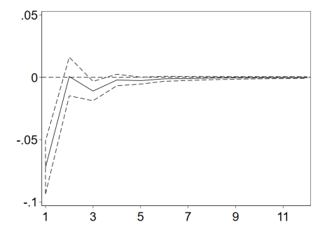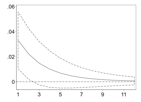研究结果还表明,医生在线下的患者越多,其越可能在网上分享更多医疗文章。如图3所示,对线下门诊总数(NOF)的一个单位冲击会导致在线文章总数(NOA)的增加。这种正向效果在开始时最显著,随着时间的推移逐渐减少。这一结果表明,医生的在线知识共享行为可能受到线下服务的影响。事实上,在线平台上的医生通常会分享他们的专业经验,并在网上文章中回答患者常见的问题。与患者的互动越多,医生与公众分享的服务相关信息就越多,而医生通过分享这些信息来改善服务的动机也就越强。因此,这一发现与先前研究的结果(与工作有关的关注可以作为促进专业人员知识共享的动力)保持一致。