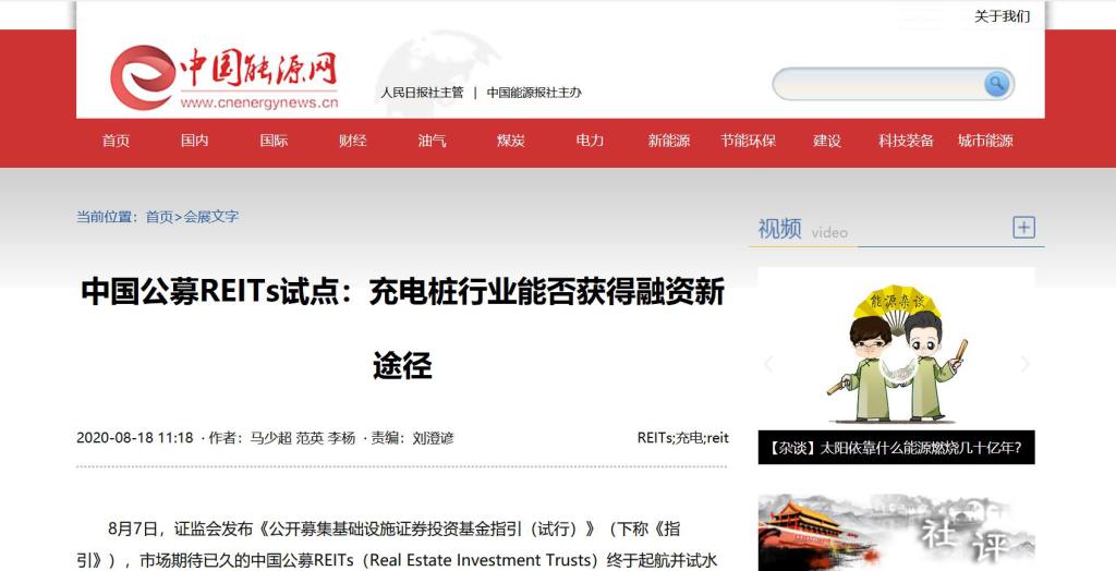 8月7日,中国证监会发布《公开募集基础设施证券投资基金指引(试行)》,市场期待已久的中国公募REITs(Real Estate Investment Trusts)终于起航并试水基础设施领域,这是我国资本市场的一项重大改革,也是我国实现经济绿色复苏的一项重要保障。beats365亚洲体育投注院长范英教授在人民日报社主管的中国能源网发表文章认为,REITs试点将增加我国“两新一重”重点建设领域的融资渠道、提升企业资金流动性,为新能源汽车充电桩行业未来的发展提供了新的发展动力。同时,REITs也将为公众提供了全新的固定资产投资方向,吸纳民间资本促进经济内循环。