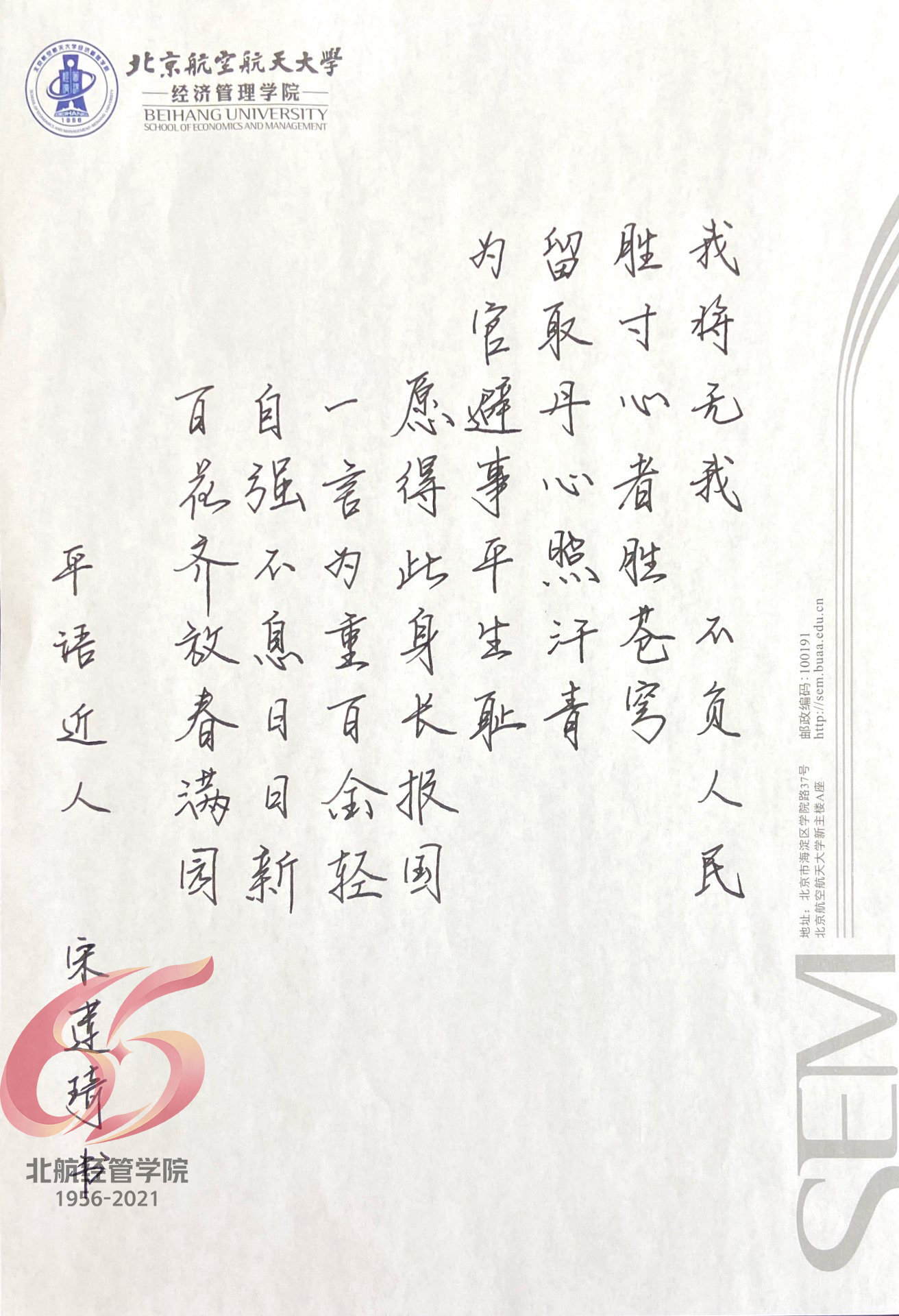 为进一步深入学习领会习近平总书记最新重要讲话、文章、谈话中所引用古代典籍和经典名句折射出的内涵和文化价值,生动展现学院师生对中华优秀传统文化和习近平新时代中国特色社会主义思想的理解与诠释,北航beats365亚洲体育投注面向学院全体师生开展“平语近人”书法和海报设计大赛。大赛自4月启动以来共收到60余幅投稿作品,32幅作品入围评选。(海报设计作品由于投稿数量较少,该类别不组织评选)。经网络票选和专家评议,现将评选结果公布如下。