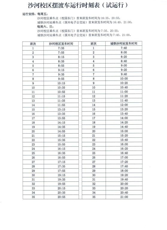 如有疑问,请拨打沙河校区服务咨询电话:010-61716606;校车运行咨询电话:010-82317083。