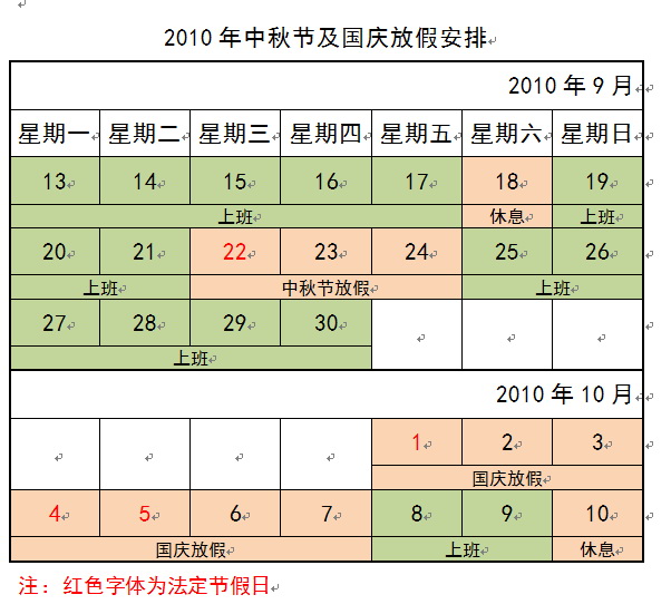 根据学校《关于2010年部分节假日安排的通知》,中秋节及国庆节放假通知如下: