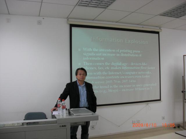 2009年6月10日下午15时,新主楼A1048室,应我院周荣刚老师邀请,美国伊利诺伊大学航空研究所人因工程学组助理教授傅伟达博士做了题为《Improving Human-Information Interaction: A Human-centered Approach》精彩报告。