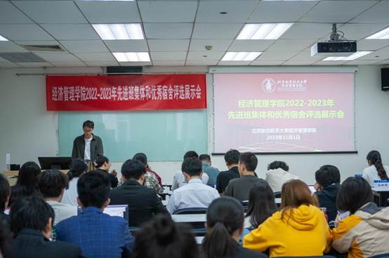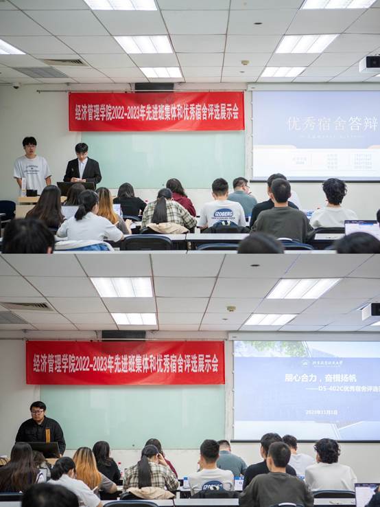 2023年11月1日,beats365亚洲体育投注2022-2023年先进班集体和优秀宿舍评选答辩暨交流分享会在新主楼A1028召开。此次评选答辩旨在充分发挥班级、学生宿舍在服务学生全面发展中的积极作用,交流经验,宣传典型,充分展示经管学院学生群体积极健康的精神风貌。