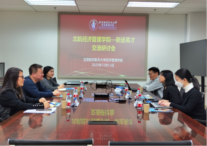 2023年12月13日上午,新途英才教育集团总经理王华一行来我院交流研讨。学院党委副书记高超、专职老师涂晋、职业发展中心汪佩参与交流研讨会。