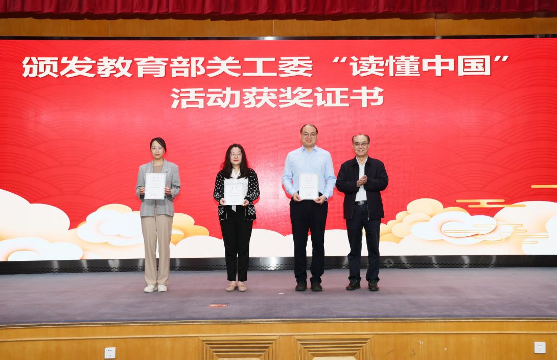 为荣获教育部关工委“读懂中国”活动奖项的单位颁奖
