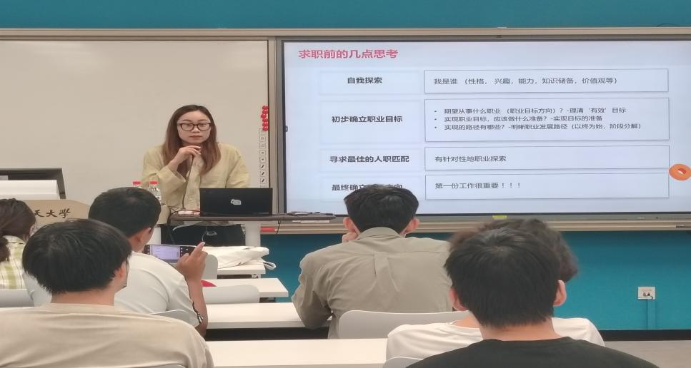 随后,讲座进入面试技巧分享环节。霍经理结合自身丰富的招聘经验,从深入了解公司背景、精准匹配岗位需求、模拟面试场景练习等方面,为同学们揭秘了面试官背后的考量标准与常见问题。她强调,面试不仅是专业技能的展示,更是个人素质、沟通能力和应变能力的全面考察。