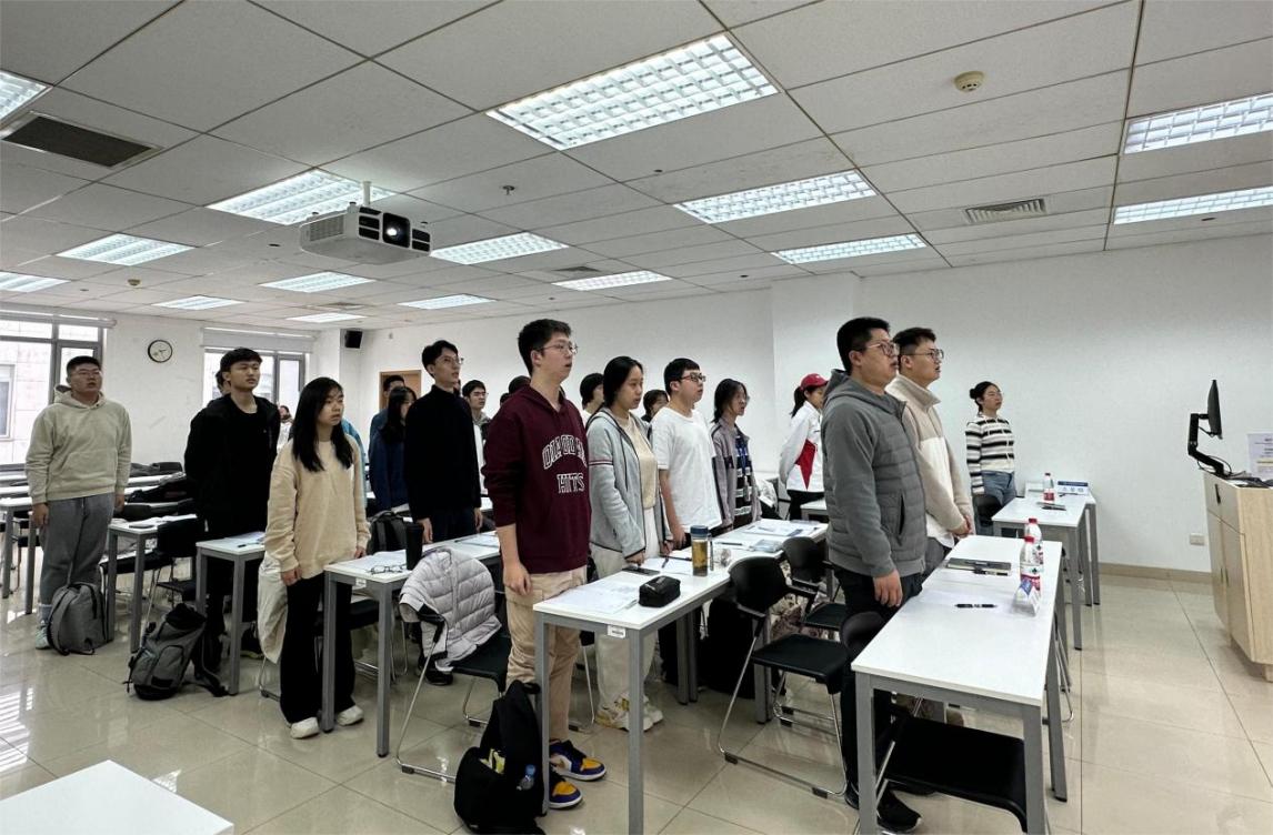 党课正式开始前,工作坊全体学员起立,面向党旗,庄严地齐唱国际歌。在国际歌振奋人心的歌词与激昂有力的旋律中,第二次党课正式拉开序幕。