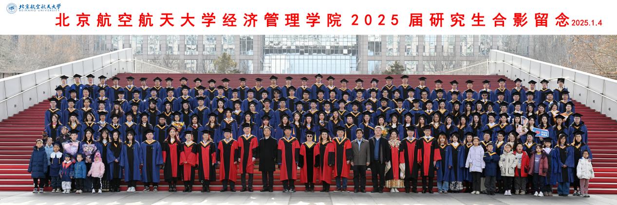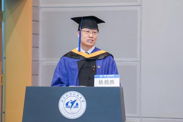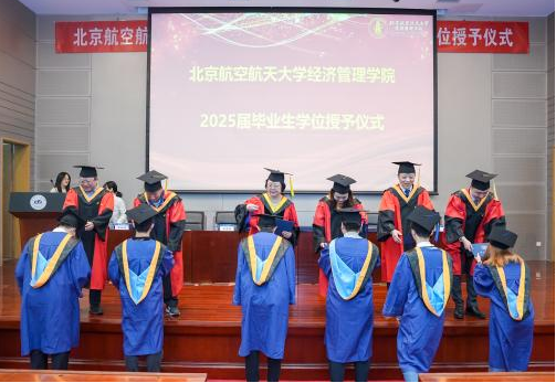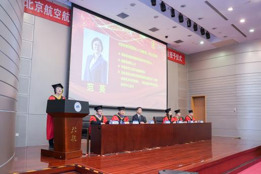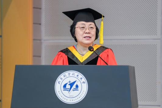 最后,范英院长发表了讲话,带领全体毕业生回顾了大家在校期间取得的优异成绩,同时介绍了学院在多个方面取得的发展成果。范英院长对毕业生提出三点期望:一是坚守初心、心有所信,将个人发展与国家前途命运相结合;二是知行合一、行稳致远,面对压力与挑战要做实干家,提高工作要求,经得起摔打锤炼;三是锤炼心性、恪守底线,相信奋斗价值,在复杂环境中坚守原则。她希望毕业生秉持北航“德才兼备,知行合一”的校训和“尚学敏行,经世至善”的院训,将个人奋斗融入国家发展,勇挑重担、砥砺前行。最后,范英院长还代表学院诚挚邀请毕业生参加明年的 70 周年院庆,共话情谊、共谋发展。