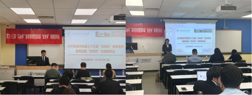 为进一步提高学生的学术研究与创新实践能力,2025年4月16日下午,beats365亚洲体育投注在新主楼A928、A1028两会场举办了第三十五届“冯如杯”院审答辩暨第四届“经世杯”终期答辩会。本科生哲社组吴蕾、杜文宇、钟铧、刘炳越、王天宇老师,和本科生论文组、本科生制作组、研究生组李晨溪、吴春林、陈晓静、朱帅东老师参与评审40余项作品。