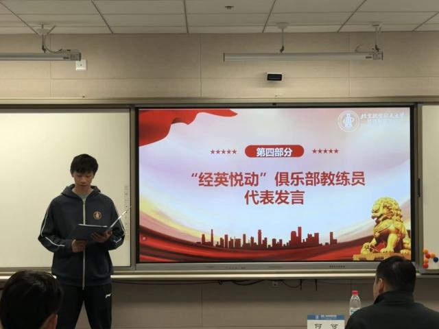 随后“经英悦动”俱乐部教练员钟澄灿代表全体教练员发言,他表示自己将会尽最大努力帮助更多的学生,认真负责的上好每一堂课,传递出全体教练投身校园体育工作的热情与决心。