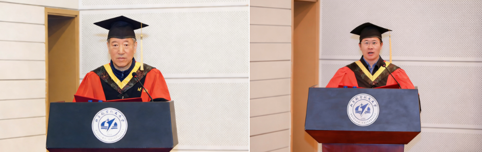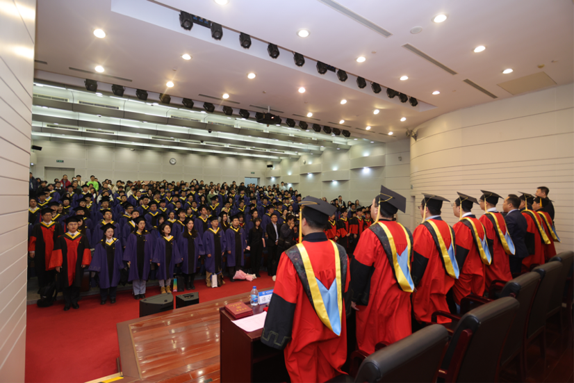 激昂悠扬的校歌《仰望星空》齐唱后,毕业典礼圆满落下帷幕。随后,举行学位授予仪式,学院领导和导师代表为在场每一位学子拨苏正冠、颁授学位,声声祝福饱含着师长对后辈逐梦远航的殷切期盼。
