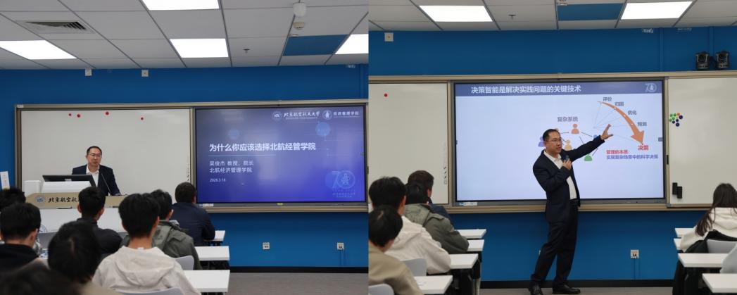 专业宣讲环节,吴俊杰院长围绕人工智能时代下的决策智能研究、学院典型成果、核心专业特色,以及一流科技商学院的发展前景等内容展开讲解,帮助同学们系统了解经管学院的学科建设与培养理念,建立起对各专业的全面认知。