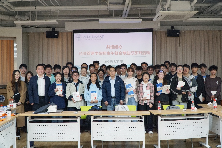 午餐交流环节,同学们围绕人才培养体系、专业方向选择、考研就业前景等问题踊跃提问、互动交流。吴俊杰院长立足人工智能时代背景,结合学院一流科技商学院发展规划,介绍了学院在数据智能、工业决策等领域的学科布局,以及专业发展、就业深造等方面的竞争优势。他结合具体案例逐一答疑解惑,针对性解答同学们的疑问,并给出中肯务实的发展建议,助力同学们明晰专业特色、找准成长方向。活动最后,吴俊杰院长为同学们赠书寄语并合影留念。