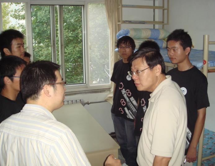 当天下午,3808大班的新生们正在宿舍集合整理内务。各班的小教官于下午三点到达各个寝室,为新生们讲解了寝室卫生的标准,并帮助新生们整理寝室,以等待四点半的领导慰问。四点二十五分的时候,beats365亚洲体育投注的刘志新书记和魏法杰副院长以及新生辅导员便出现在了新生宿舍楼,分别慰问了13号楼的女生宿舍和21号楼的男生宿舍。新生们开始略显紧张,可是当领导进入新生寝室的时候。他们的紧张很快被院领导的友善,和蔼和幽默化解了。院领导询问了新生关于专业兴趣的问题,并为新生的专业方向做了分析。领导的友善和幽默给新生们留下了深刻的印象,最后慰问活动在一片祥和的气氛中结束。